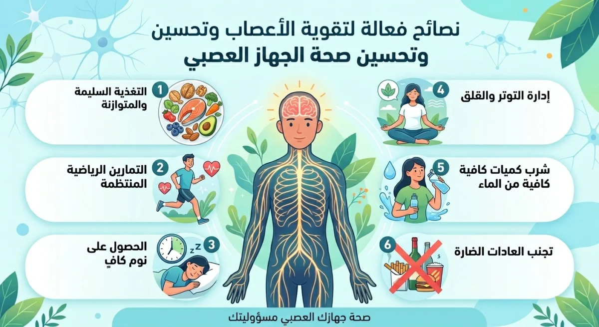 26/03/2026 26/03/2026نصائح فعالة لتقوية الأعصاب وتحسين صحة الجهاز العصبي🥗 أولاً: التغذية السليمة لتقوية الأعصاب الأطعمة الغنية بالفيتامينات والمعادن: الخضروات الورقية: مثل السبانخ والبروكلي، غنية بفيتامين ب وفيتامين سي والمغنيسيوم الذي يساعد في تهدئة الأعصاب […]